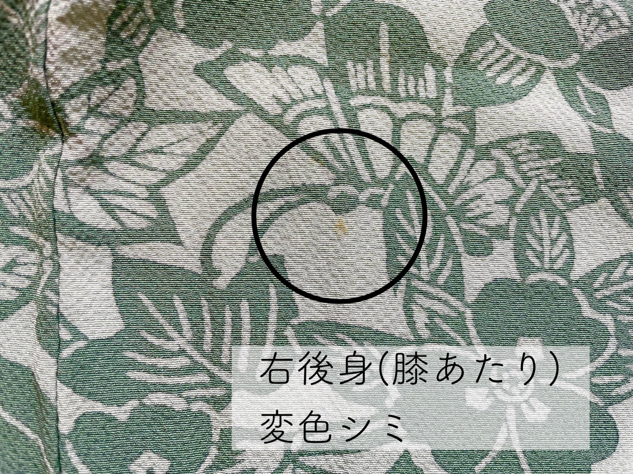 ●左衿・右胸・右後身膝あたりに変色シミあり